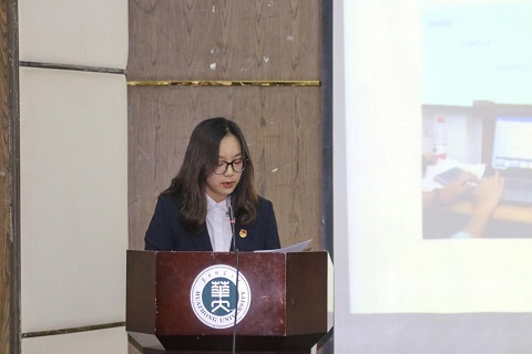 钱肖凡在发言中指出,社会学院团委、学生会始终秉持“让团委、学生会成为像家一样的存在”的理念,牢记“求实创新、立德树人”的校训,弘扬“忠诚、博雅、朴实、刚毅”的华师精神,创造博爱、博学、博雅的“三博”文化,努力加强思想道德建设,打造优良学风,全心全意为学生服务。最后,甄诚充分肯定了团委、学生会的成长和工作成果,做出了拓展性的总结。他指出,团委、学生会积极响应党和国家的号召,深化团学内部改革,学习共青团理论,构筑坚实的思想堡垒。他说道:“事业是要有人开拓的。”他希望团学的各部门能勇于尝试,争做开拓者和建设人。