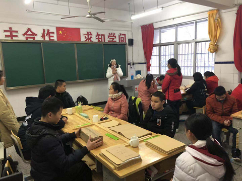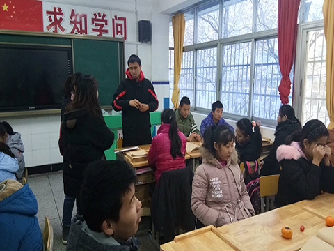 在于盲校负责人见面后,志愿者们向其表示了此次活动的目的。随后,志愿者们兵分两路,由主讲人带领,分别前往“气象与气候”课堂与“诗歌鉴赏”课堂,给盲校八、九年级的学生们上课。