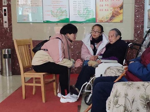 在与老人们进一步熟悉后,各组志愿者为本楼层的老人播放了《刘三姐》的节选片段。随后,志愿者们更是亲自上阵,为老人们表演了《穆桂英挂帅》、《花木兰》等戏曲,赢得老人们的赞赏。老人们也积极参与为大家表演了京剧、豫剧等节目。在所有的表演结束后,志愿者们与各自对应的老人继续交流,直至活动的最后老人们和志愿者们仍在交谈着各自的话题不愿道别。