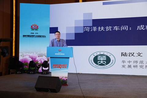 华中师范大学社会学院教授、减贫与发展研究院院长陆汉文上台做《扶贫车间专题研究报告》,分别从菏泽扶贫车间取得的成就、为何取得成功、发展路径及研究菏泽扶贫车间的理论视角等几方面做了分享。