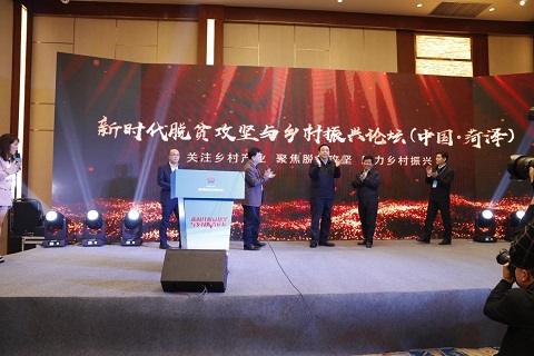 各位领导共同登台进行“新时代脱贫攻坚与乡村振兴论坛”启动仪式。