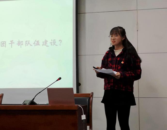 小组展示汇报环节中,学生会成员分为六个小组,围绕相关课题进行宣讲,作为团干培训学习成果的展示。胡紫嫣团队课题《社会发展对大学生主流文化与亚文化影响的调研》、汪清滢团队课题《青少年维权研究》、孟乐萱团队课题《基层建设》、路晓琦团队课题《青少年教育侵权那些事》、仇浩竹团队课题《青年流行文化》、李宁团队课题《阴暗深处,光之所需——关于校园欺凌现象及其治理的思考》的宣讲人依次上场进行展示。评委老师们认真观看,对可圈可点之处进行表扬,对不足之处提出改进意见。
