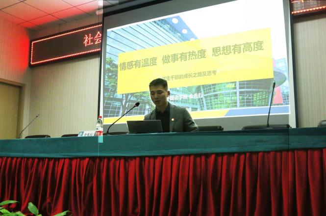 10月27日晚,我院第二十四届团委、学生会团干培训第四讲于大学生活动中心403报告厅开展。本次培训邀请了外国语学院团委书记全先行为我院全体团干进行主题为“情感有温度,做事有热度,思想有高度”的宣讲。