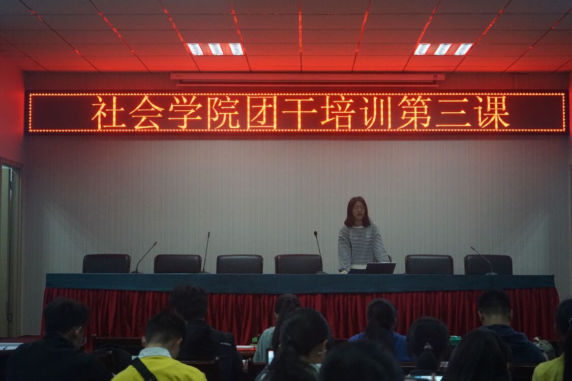 10月26号晚,社会学院第二十四届团委、学生会团干培训第三讲——宣传工作技巧在大学生活动中心四楼403报告厅举行。华大青年传媒中心前运营部总监梁婉坪与华大在线首席记者郝文作为本次培训的主讲嘉宾向团干们进行宣传工作上的技巧分享。