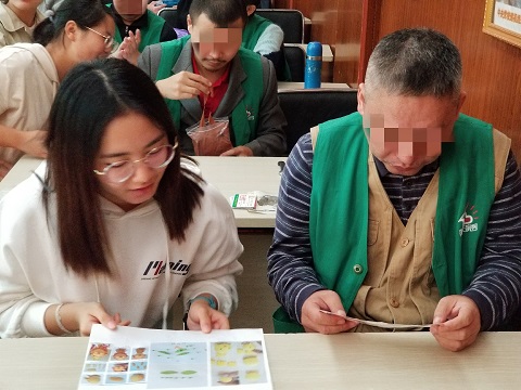 本次活动由胡可芯主持,她首先向全体志愿者和服务对象交代使用粘土的注意事项和技巧,志愿者们按照制作教程上的步骤一对一或者一对二地为服务对象们进行指导制作。