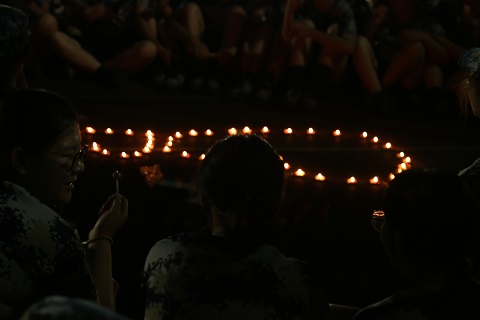 生日会上,学生会成员将事先准备好的蛋糕与蜡烛拿出,别出心裁地在地上用蜡烛摆了两个心形,彰显华师大爱、社院大爱。所有新生围绕爱心环坐,生日的同学们则在刘子玄的点名下一一出列。