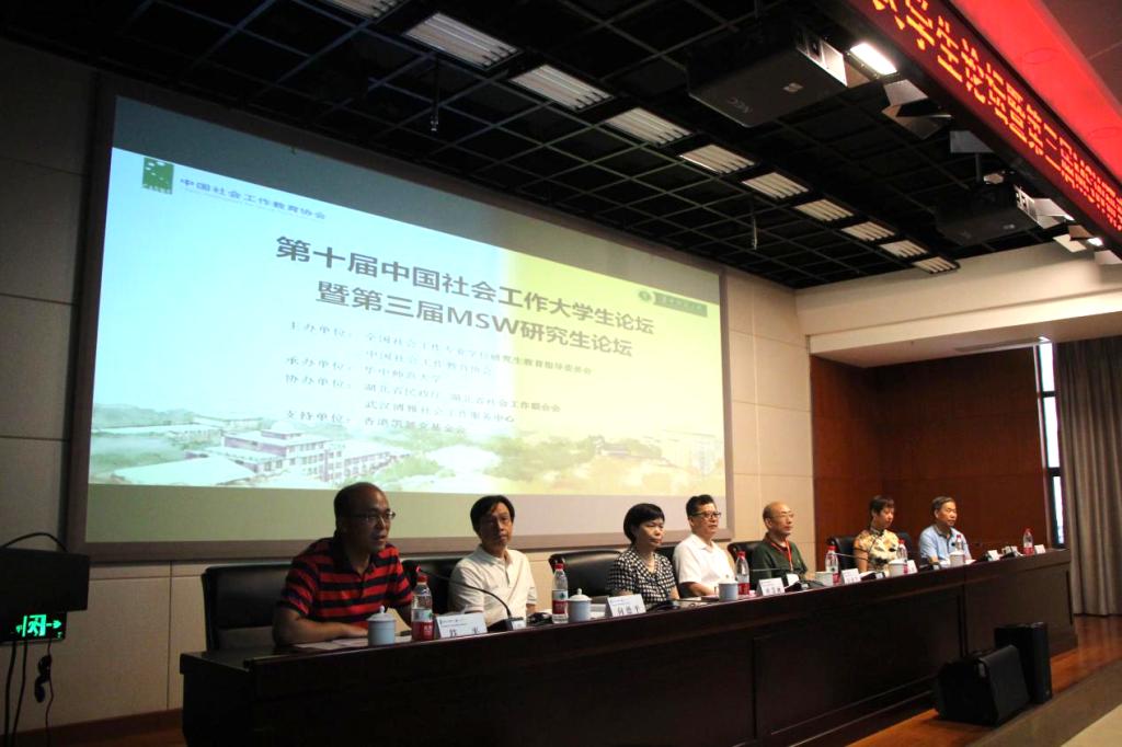中国社会工作教育协会会长徐永祥教授,湖北省民政厅副厅长、湖北省社会工作联合会会长叶景丽女士,华中师范大学彭南生副校长,中国社会工作教育协会副会长兼秘书长马凤芝教授,中国社会工作教育协会副会长向德平教授,湖北省民政厅人事处(社会工作处)一级调研员、湖北省社会工作联合会秘书长王卫民等出席了20日的论坛开幕仪式。开幕式由华中师范大学社会学院院长符平教授主持。