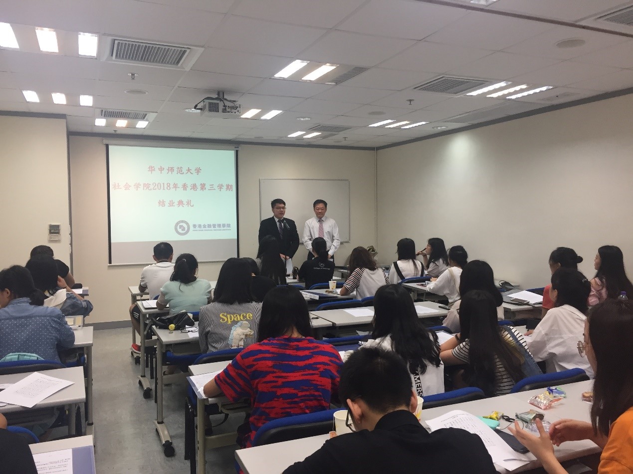 7月7日,华中师范大学社会学院香港交流团举行了结业典礼,香港金融管理学院及我院领导、我院所有同学参加了此次典礼。