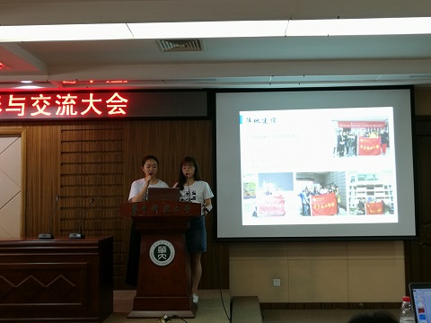 接下来由与会的12个服务队进行团队展示。华师社会学院青年志愿者协会代表向与会成员介绍了一年来的工作内容与所获荣誉以及协会“社会工作+志愿者”的专业服务模式,并详细讲解了协会广泛开展助残活动、敬老助老的志愿服务以及暖阳行动等四项服务内容。