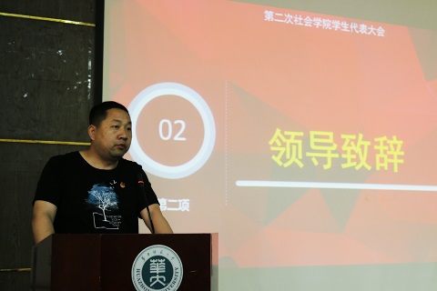 本次会议在庄严的国歌合唱中拉开序幕。随后薛平军致词。他指出,在中国特色社会主义迈入新时代的大背景下,在努力实现两个一百年奋斗目标和实现中国梦的远大理想下,新时代的大学生应当做到三点要求。第一是爱国,要忠于民族和国家;第二要励志,青年人是国家的希望和脊梁,是历史的见证者、参与者和创造者。第三要立行,做事要落到实处,走在前列,敢为人先,追求卓越。他借用习近平总书记“青春不是用来挥霍的,青春是用来奋斗的”的话语鼓励同学们发挥聪明才智,谱写人生最美华章。最后,他预祝本次第二次社会学院学代会取得圆满成功。