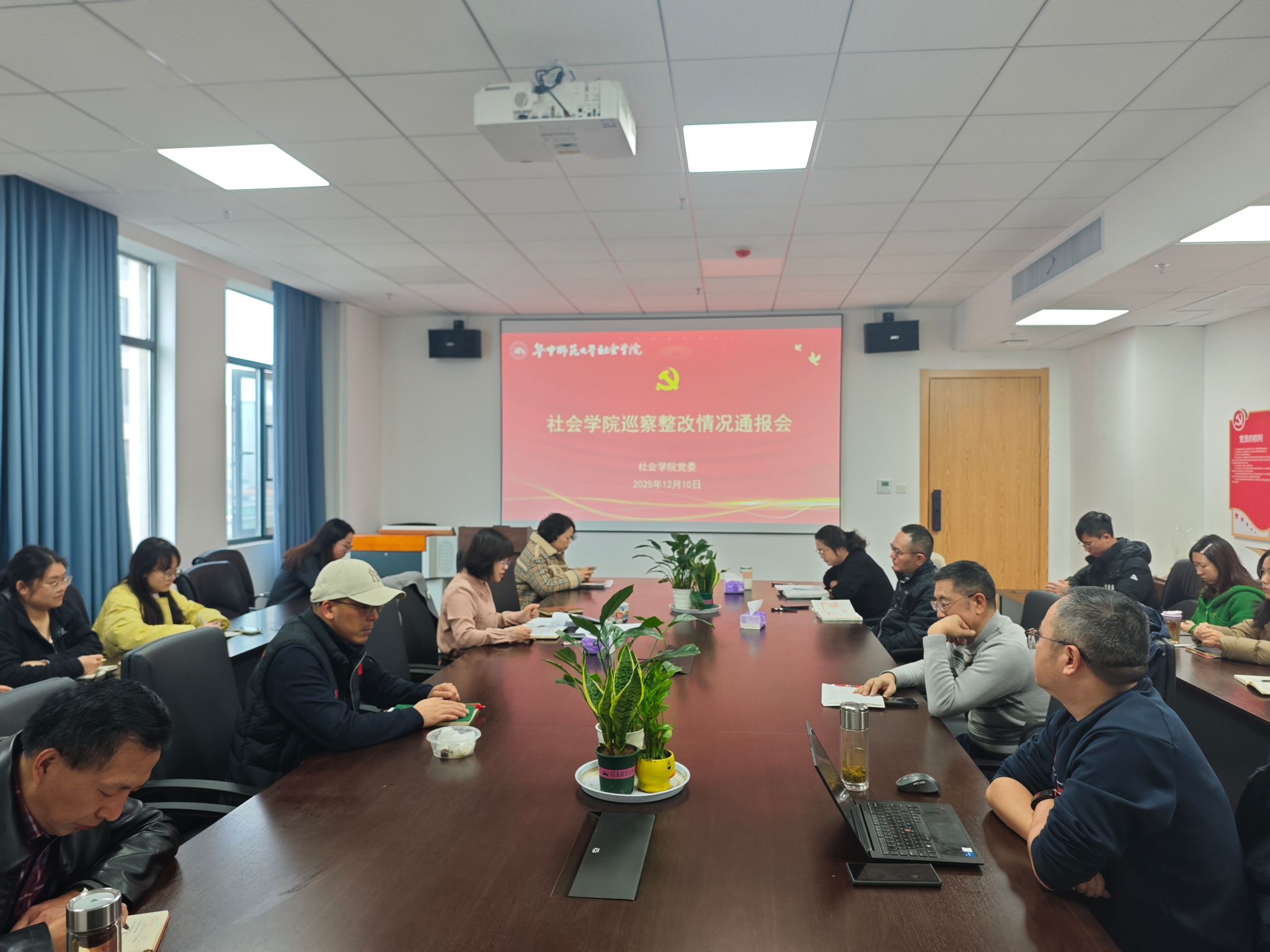近日,社会学院党委通过党委会扩大会议、党政联席会等形式,向全院师生通报巡察整改进展。自2024年接受校党委巡察以来,学院党委扛起政治责任,将整改工作作为推动学院高质量发展的重要契机,高标准推进各项整改任务落实。