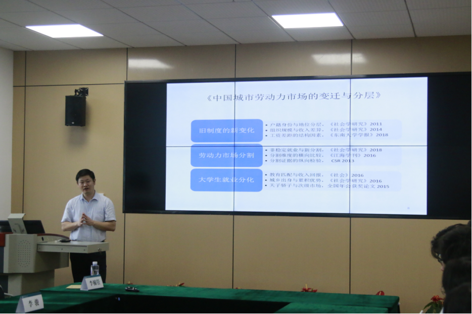 李骏研究员以“不期的相遇,永远的事业”为主题,回忆了与社会学“不期的相遇”,分享了定量研究的相关心得。他回忆了自己对社会学“不期的相遇”的学术生涯,并分享了从本科到博士期间自身研究方法的变化,将其总结为本科模仿,硕士规范,博士定型。对于如何做定量研究,李骏研究员认为,定量研究从很大程度上是“方法驱动型”的研究模式,即定量研究的核心是掌握技术、深挖数据库里的丰富信息、通过方法来发现问题。他认为好的定量研究应该对影响因素进行深入探讨,抓住核心变量而非面面俱到,形成点-线-面-体的思维模式,将自己研究的关注点串联起来,强调研究与研究之间的关联性、体系性。随后,他以《中国城市劳动力市场变迁与分层》为例,强调了定量研究的变量之间应该反应横向共时性和纵向历时性两方面的变化;还以《21世纪中国社会心态的谱系与变迁》为例,说明了好的定量研究应该呈现出动态性,还需要通过操作化将抽象问题具象化、可测量化。