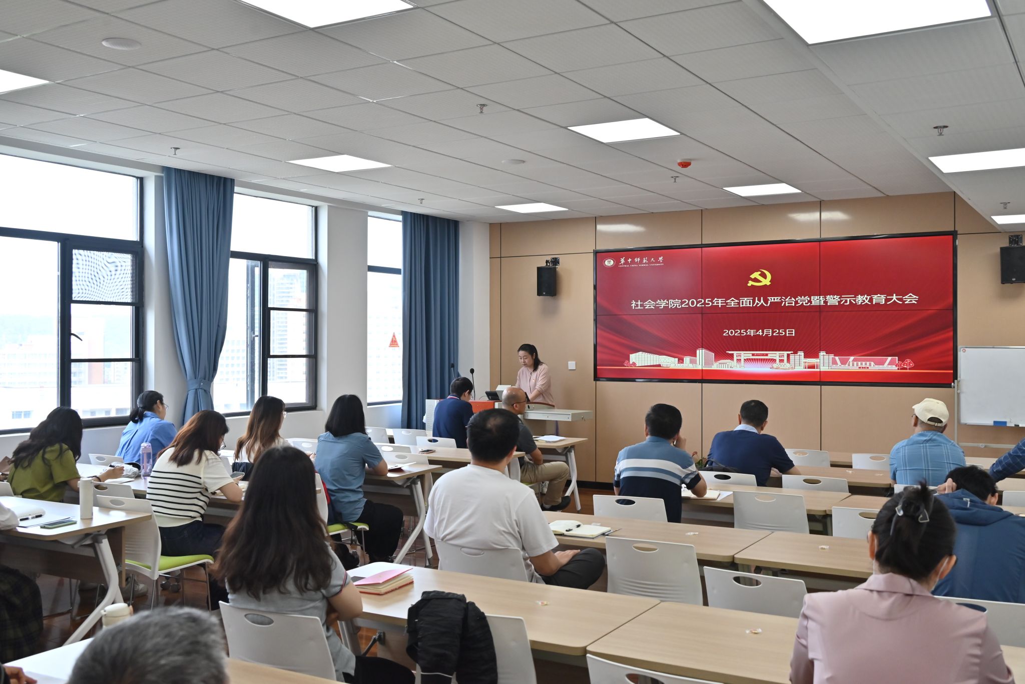 为深入学习贯彻习近平新时代中国特色社会主义思想,认真贯彻二十届中央纪委四次全会精神,扎实开展深入贯彻中央八项规定精神学习教育,落实学校巡视整改部署要求,纵深推进全面从严治党,4月25日下午,社会学院全面从严治党暨警示教育大会在文科科研楼北楼912召开。社会学院全体教职工党员、学生党支部书记、纪检委员参会,会议由社会学院院长符平主持。