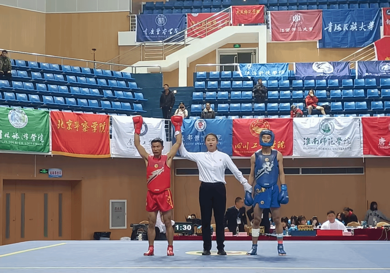 第三次把全国冠军带回学校,我院运动员肖志飞表示,散打赋予他的不止金牌,更是钢铁般的意志和永不言弃的精神;教会他的,从不是如何击倒别人,而是让他懂得,真正的强大源于面对挫折的勇气,源于对每一位对手的敬意,源于对自身极限的不断超越。