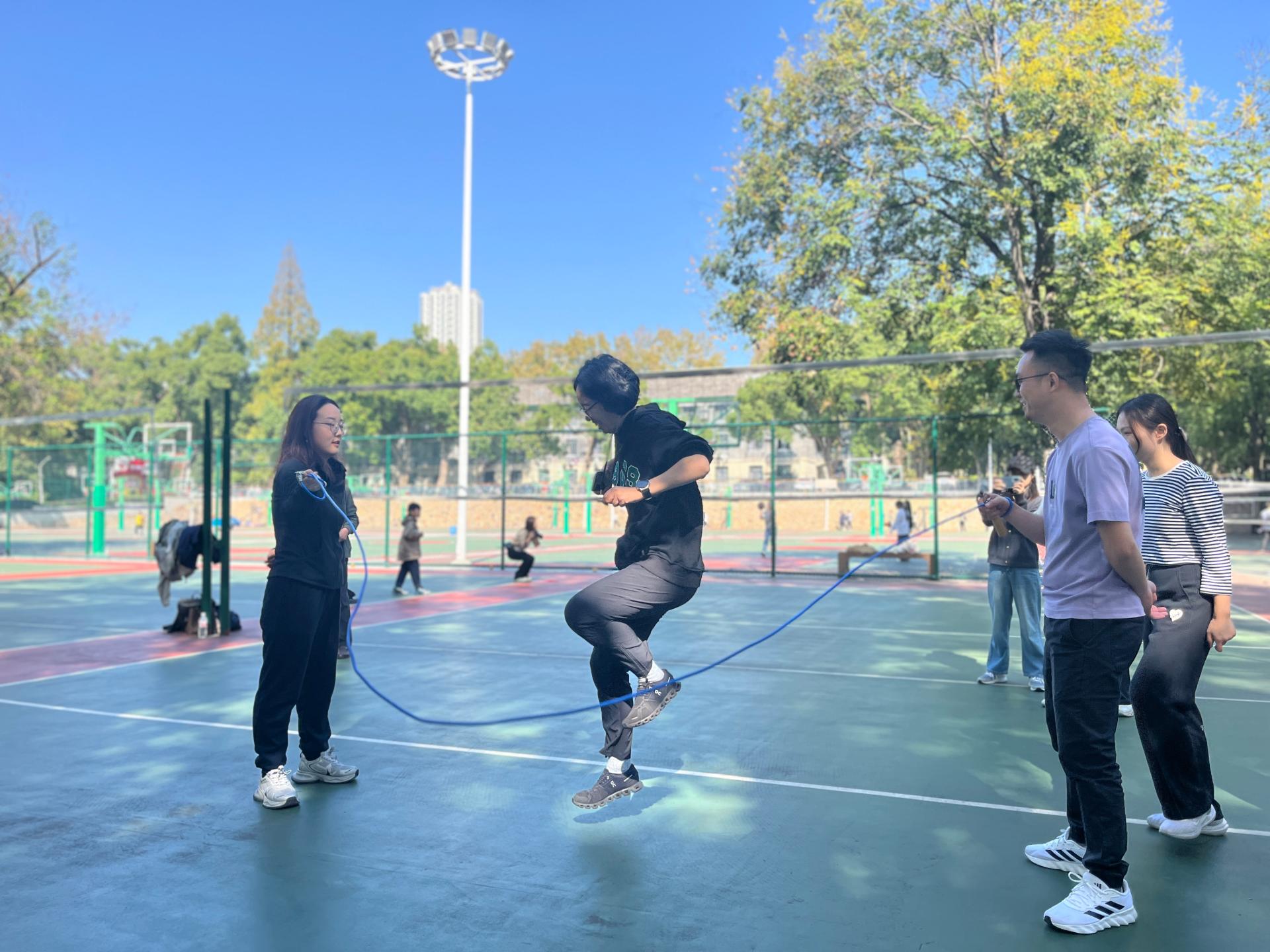 社会学院教师团队在接下来的两天里参加了趣味十足的教职工趣味运动。本次运动会设有“集体跳绳”、“披萨战士”、“运转乾坤”等多个项目,这些项目既考验体力与耐力,又注重团队合作与默契。社会学院的老师们在运动场上尽情挥洒汗水,在轻松愉悦的氛围中感受运动的乐趣,增进了彼此之间的情谊。