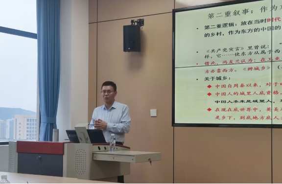 首先,陈心想教授针对“乡土”何在的问题进行论述。他指出费孝通先生的“乡土”概念源于雷德菲尔德(Robert Redfield,1897~1985)的《乡土社会》(Folk Society)一文。紧接着陈教授解读了费孝通先生的《乡土中国》中的三重逻辑,并分别对作为中国乡下的“乡土”、作为东方的中国的“乡土”和与现代性社会相对照的传统中国的“乡土”这三重叙事角度进行细致的解读。他总结指出,三重叙事的核心逻辑是紧紧围绕“城乡”、“东西”和“古今”展开。随后,陈教授讲授了自己关于“乡土何在”对“乡村振兴”的理解,他指出,乡村振兴的定位应该从整个中国“走出乡土”的思路出发,通过中国式现代化这一概念与路径而充分体现。最后,陈教授从六个方面对费孝通先生的治学之道进行了分享,号召同学们学习费孝通老师的治学方法,在座同学收获良多。
