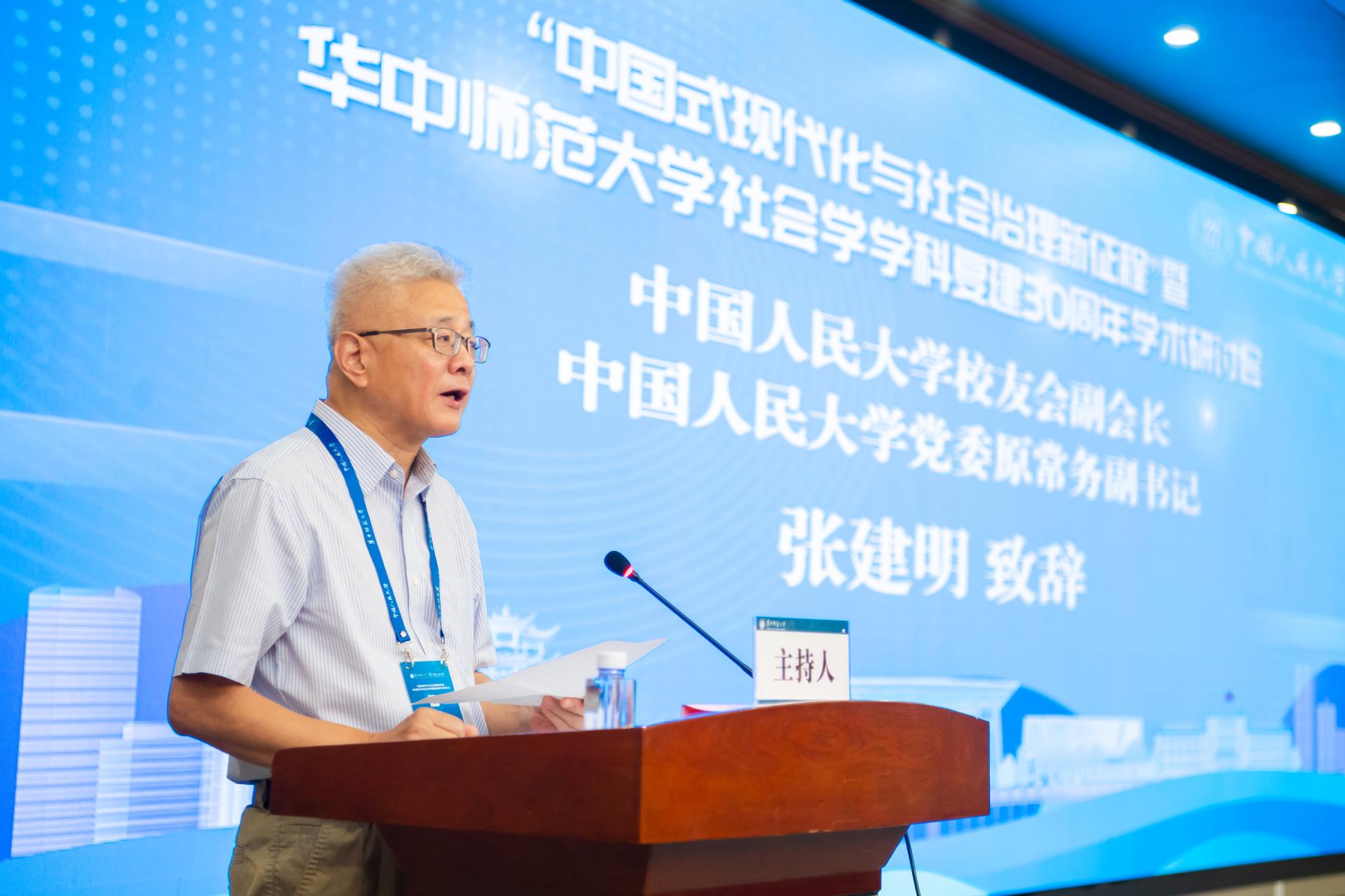 中国人民大学校友会副会长、中国人民大学党委原常务副书记张建明指出,在华中师范大学社会学学科复建30周年之际,本次主题学术研讨会的召开,有望积极推进中国社会治理体系与治理能力的现代化,推动中国社会学学科体系、学术体系、话语体系的创新,充分体现了中国社会学界全面贯彻党的二十大精神的理论自觉。张建明表示,中国人民大学始终致力于同全国兄弟高校一道,共同坚持和发展具有中国特色的哲学社会科学学科体系、学术体系和话语体系以及自主的知识体系。本世纪以来,中国人民大学与华中师范大学在社会学学科建设领域有许多良好合作,再次携手主办高层次学术会议,充分体现了两校社会学学科深厚的学缘情谊和友好的合作关系。