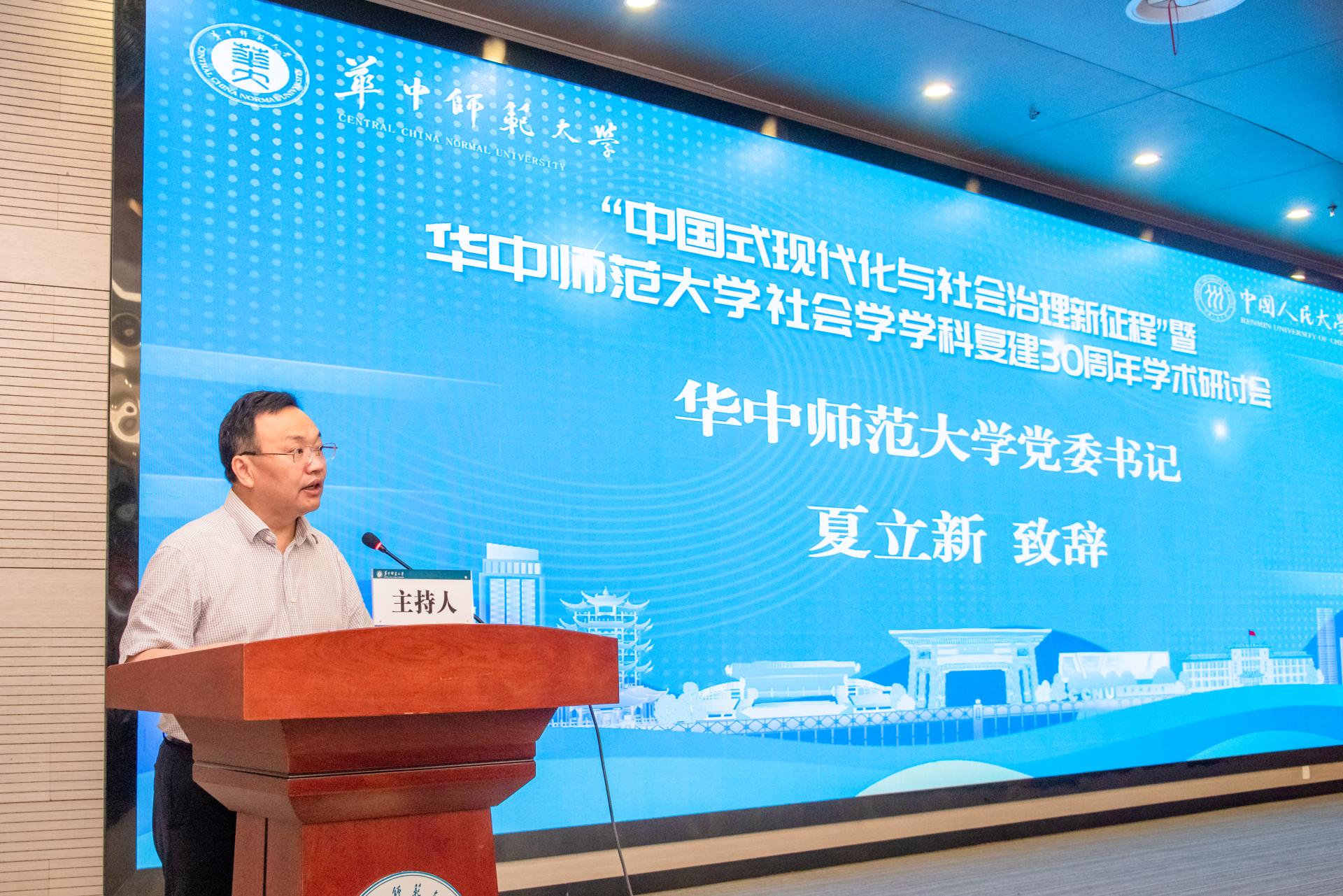 开幕式上,校党委书记夏立新指出,我校社会学具有悠久发展历史,至今已逾百年。学校前身中华大学最早于20世纪10年代开设有社会学、人类学课程,1930年代初,学校前身华中大学的社会科学系开设了社会学专业,1935年成立社会学系。百余年来,我校的社会学教育和学术事业筚路蓝缕,始终扎根中国大地,海纳百川,历久而弥新。夏立新表示,自1993年学科复建以来,我校社会学学科得到费孝通、郑杭生、李培林等中国社会学界前辈和同仁的大力支持、鼎力相助,学科得以一步步稳健成长。目前,我校社会学学科已形成了完备的人才培养体系,拥有社会学一级学科博士学位授予权,近年来学科建设成效显著。我校社会学学科30年来取得的点滴成绩,离不开兄弟高校和全国社会学界的各种支持和帮助,同时也恳请各位领导和专家学者继续关心和扶持。