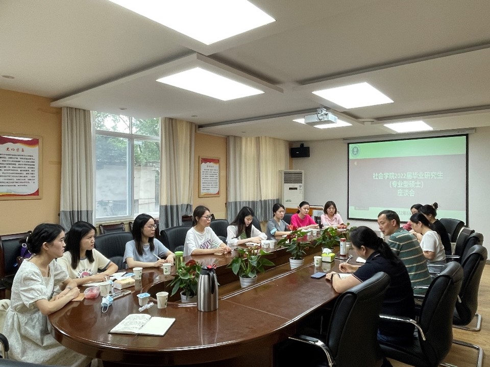 (通讯员,邹永森)6月2日中午12点,我院在219会议室举办2020级社会工作专业研究生毕业生座谈会活动,学院党委卢治平书记、寇娜副书记、研究生辅导员翟娟老师出席座谈会,20级社会工作班级党员和学生代表共计11名同学参加此次座谈会。