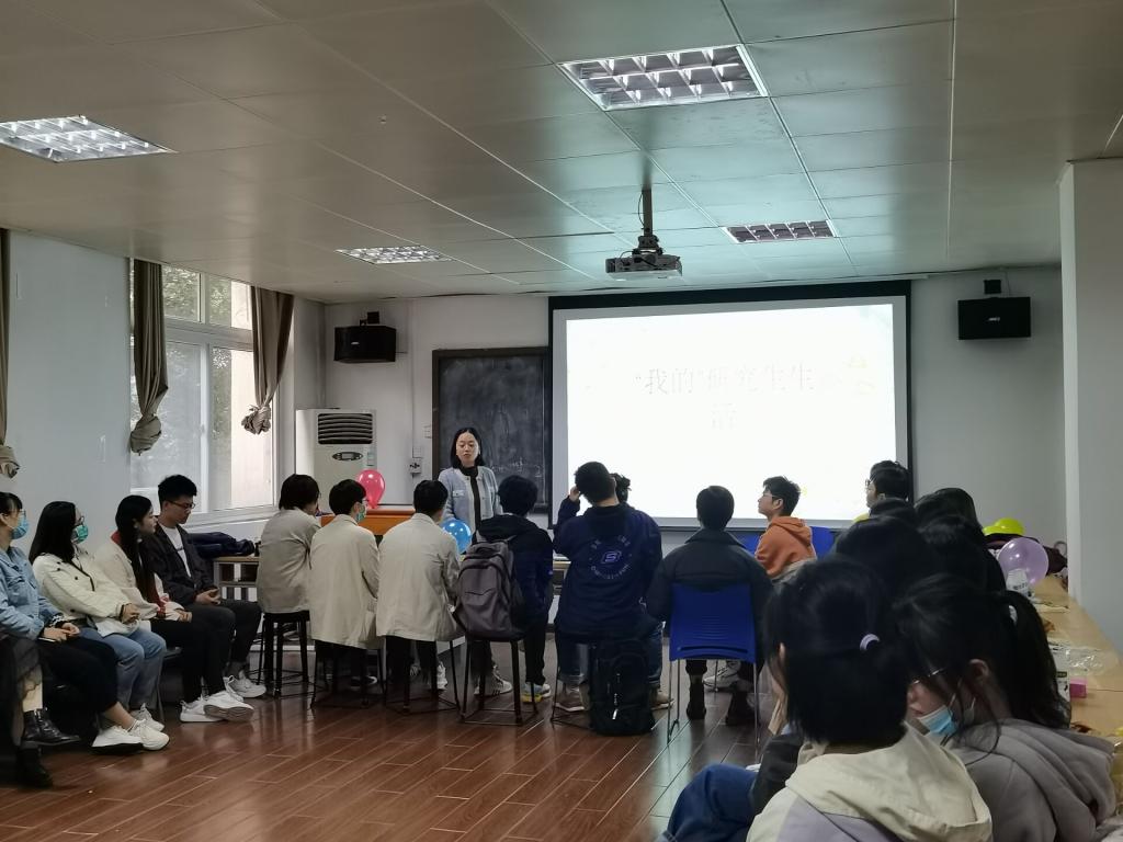 紧接着研究生辅导员翟娟老师,通过“‘我的’的研究生生活”问题式的讲解同大家交流,了解大家入学一个月来的整体情况以及大家对自己专业的认知同今后研究生生活的安排计划。