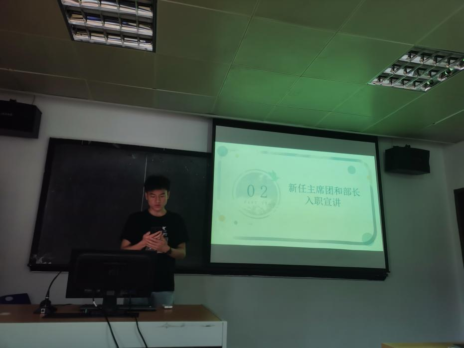 在上届部长总结发言之后,新一届干部班子相继作了简短发言,都表示会总结过去一年来的不足,并不断改进,不忘初心,带着研会继续前进。在本次会议尾声之际,学院兼职辅导员霍璐瑶也发表了她的看法,她肯定研会部长们这一年来的领导、协调和对工作开展遇到困难的理解,肯定研会干事们对部长的配合和亲力亲为的执行。她认为,研会这一年正常运转,无论做的好或不好,对自己的期望是否达到,都过去了。回忆竞选时的初心,大家要试着进行总结提升。她说道,新一届研会干部都是她身边关系很好的同学,她相信新一届成员有能力把研会办得更好。