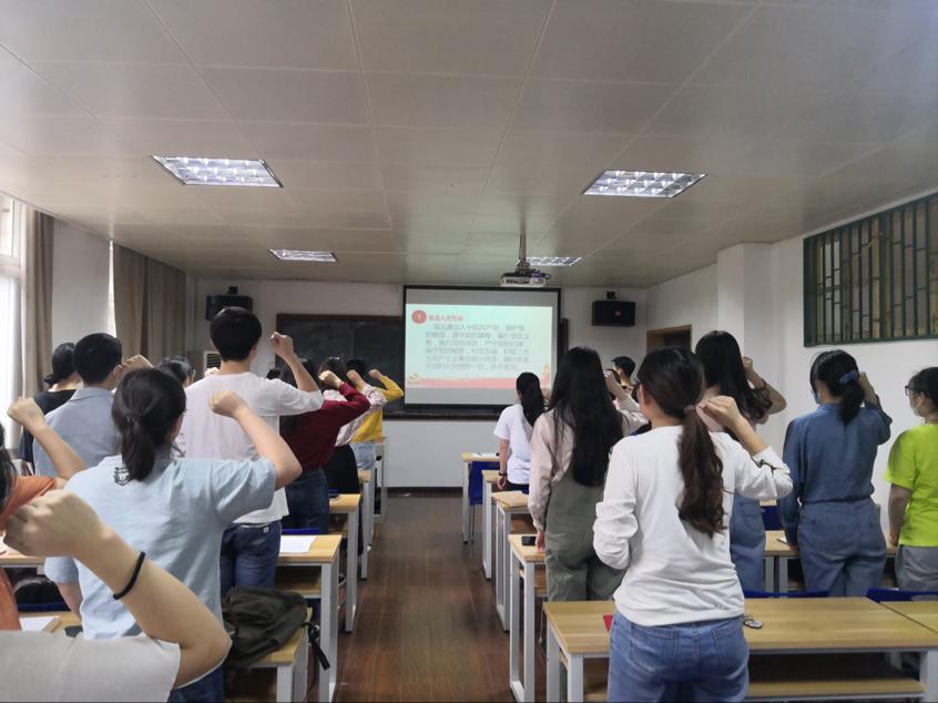 5月28日中午,社会学院2020级社会工作研究生党支部在社会学院319教室召开了5月份主题党日活动。本次党日活动的主题是“学习百年党史,践行初心使命”。本次党日活动主要内容有学习党史教育指定读本、学习《习近平总书记在清华大学考察时的重要讲话》、“微党史”分享活动以及支部书记讲专题党课。本次党日活动由党支部书记邹永森同志主持召开,支部27名党员共同参与,两名党员因事请假。会议伊始,全体党员重温入党誓词,集体诵读党章第二章第十五条、十六条。