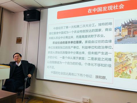 接下来,徐勇教授从近代以来“个性解放与家庭革命”、“集体社会与社会国家化”、“市场经济与个体化”以及“十字路口上的中国社会”几个阶段分析了中国社会演化的路径以及不同时期国家与社会的关系。徐勇教授指出,以“群”为体的中国的国家与社会关系中,“群”不是西方意义上与国家分离和对立的社会,而是由国家组织和治理的社会,与荀子的“群”相似。社会的变革性在于个体化,而延续性在于国家与社会的关系。社会包裹在国家之内,国家与社会相互渗透、相互依赖,二者之间的过渡层是基层,二者的边界交叉交融。因此,正是因为国家与社会互相渗透,政治学与社会学密不可分。这便是支配学科走向的神秘力量。至此,讲座最初提出的问题也得到了回应。最后,徐勇教授进一步指出,这种力量要求我们跨越西方社会学的认识,从中国发现社会,从中国社会获得社会学中国学派的自觉。而要实现从中国发现社会,需要充分利用马克思主义资源、中国传统资源以及外国学术资源。