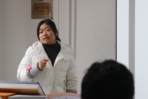 第一组进行答辩的是甘璐颖团队,她们研究的方向是农民工的语言再社会化与城市融入的问题。该小组运用了定量和定性相结合的研究方法,将问卷调查、数据分析和个案访谈综合,得出结论,并提出了相应的政策建议。但是美中不足的是这一组在进行答辩展示时用时过长,而论题报告也超过了规定字数。