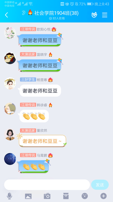 (通讯员 徐豆)3月1日下午,社会学院1904班本学期第一次班会以群语音的方式在线上顺利召开。虽然疫情阻隔了四班同学们与老师的相见,但依旧没有削减班级内每位同学参与班会的热情。