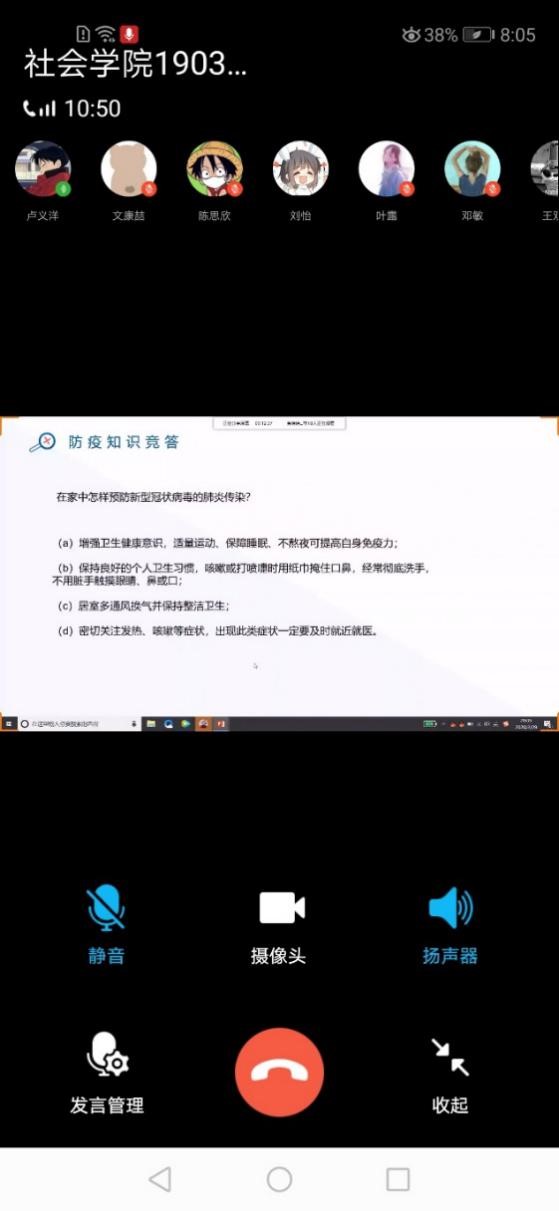 2月29日晚,社会学院1903团支部以“青春战疫,同舟共济”为主题,开展了本学期第一次团日活动。本次活动由团支书卢义洋线上直播主持,班级同学于群语音参与,旨在提升同学们的社会责任感,提倡健康居家生活方式。