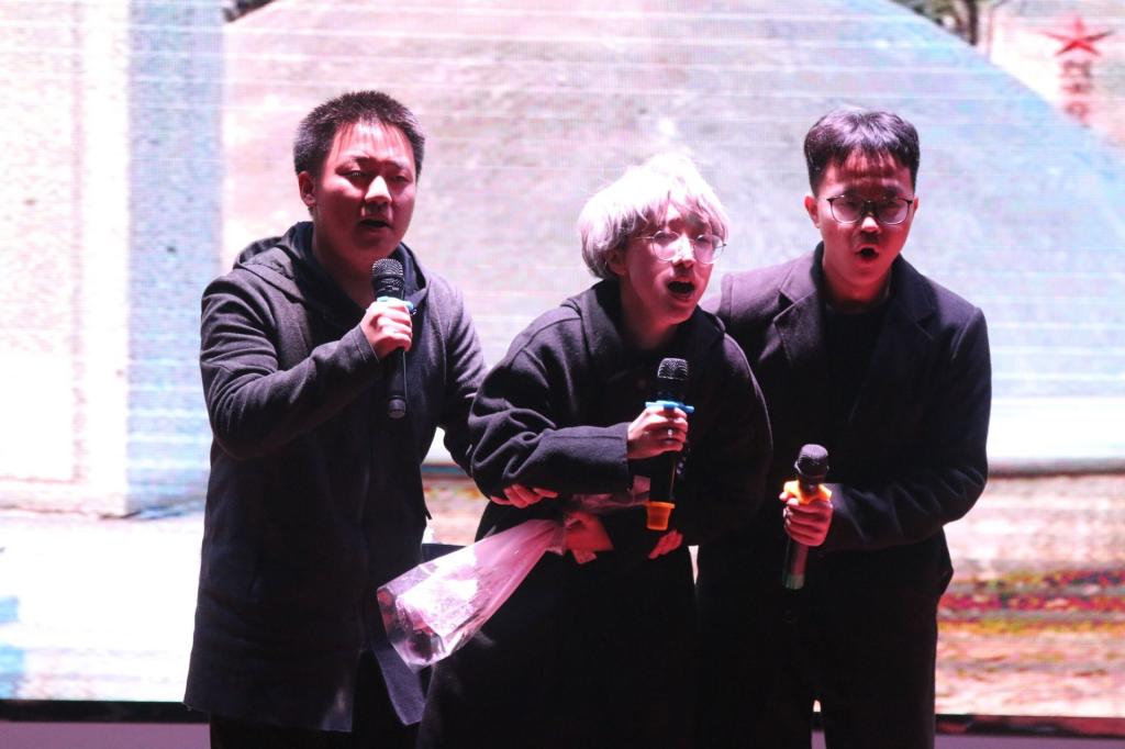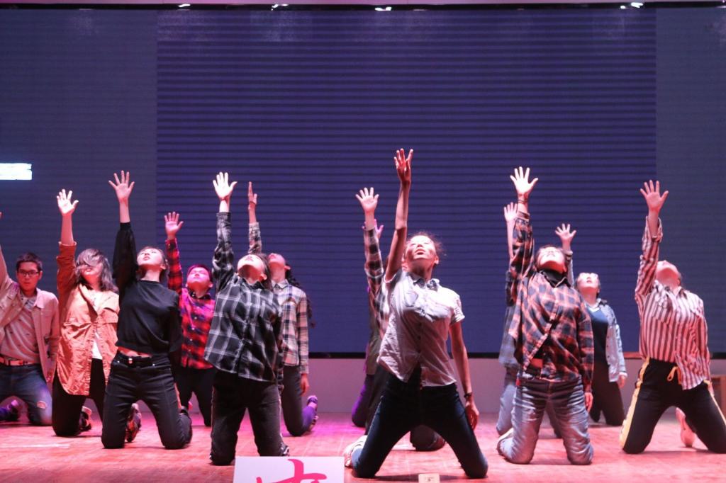 中场社会学院艺术团音乐队带来的rap《red》串场表演过后,比赛继续进行。外院18级舞蹈队以舞蹈的方式演绎了一段关于乡村教师在地震中为保护学生安全而献身的故事。舞蹈最后,表演者呐喊出的“星星之火,必将燎原!”给观众带来极大的震撼。现场气氛达到高潮,掌声雷动。