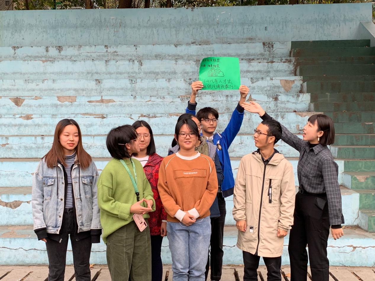 在随后的团队组建活动中,每组集思广益,共同创造出队名、口号、队徽、队歌等,并进行简短的展示活动。“我说的都”队、“华师一霸”队、“人民当家作主”队、“追梦”队、“菠菜贱卖”队、“对对”队等各小组齐登场亮相。新颖的队名,各具特色的小组才艺都令人眼前一亮。其中,由社会学院王双洋带领的“社会联盟”队,以“江山代有才人出,独领风骚我最行”的口号,赢得了全场的赞赏。