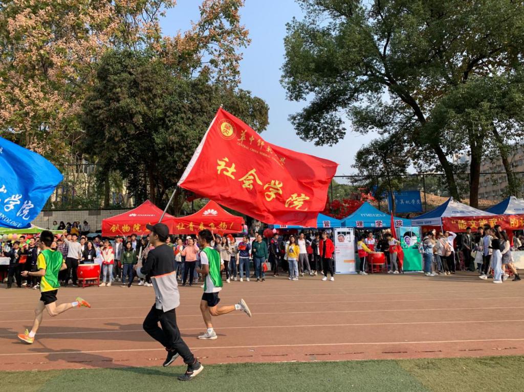 在学生男子组5000米的长跑比赛中,社会学院郑龙、郭钦两位同学奋勇拼搏,最终成绩分列第十四名和第十六名,为我院争得宝贵的五分。陪跑同学身扛红色院旗,相互接力,与他们同行,其他同学也纷纷为他们加油助威。虽有长途,不惧疲惫;团魂燃烧,温暖相伴。