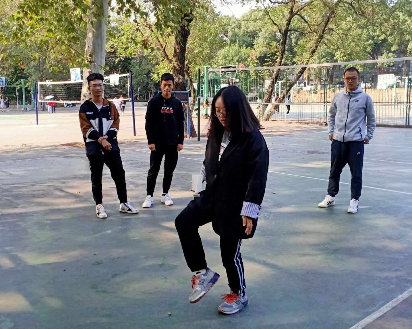 下午2时,男女混合毽球比赛于西区篮球场展开。男女混合毽球比赛成员由5男5女组成,每人一分钟,最后将所有成员踢毽的个数加起来,按总成绩排名。待所有运动员就位后,裁判员一声令下,比赛开始。社会学院的队员们发挥平稳,成绩基本保持在60个左右。