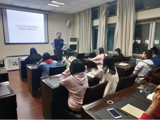 10月30日晚上7点整,2019级社会工作研究生党支部齐聚MSW社会工作观察室,开展本学期的党课学习活动。活动实到正式党员12人,入党积极分子和入党申请人各3人,其中有2名正式党员请假。本次党课邀请到社会学院副院长郑广怀教授为我们讲解“习总书记关于教育的重要论述对师生关系的启示”。