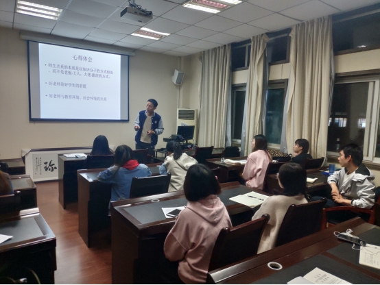 接着郑老师就习总书记的讲话谈了自己的心得体会,第一师生关系不是当下的老板-工人,大佬-跟班的方式,而是知识分子之间的互动关系。第二好老师是好学生的前提,学生有一学一,有二学二,老师首先要端正自己的态度。第三,好老师与教育环境、社会环境的关系,教师与学生之间的良好互动,可以促进外部环境的改善,学生和老师之间要塑造良好的学习和讨论环境。
