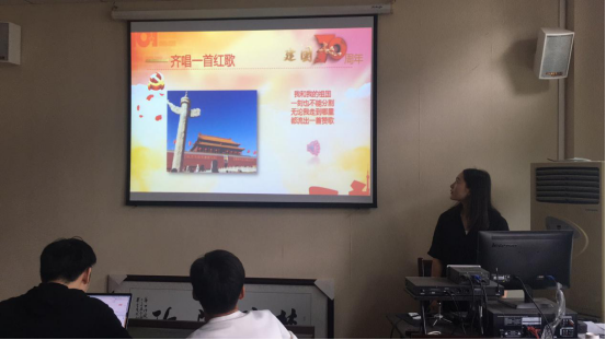 总有那么一首歌响起时让我们感到无比自豪,总有那么一首歌吟唱时让我们不禁热泪盈眶,比如建国初期的《义勇军进行曲》、《五星红旗迎风飘扬》;比如改革开放时期的《春天的故事》、《走进新时代》;还比如今天唱响大江南北的《我和我的祖国》。活动伊始,全体党员齐唱《我和我的祖国》,歌唱祖国的繁荣富强,歌唱人民的幸福生活,让人不禁心潮澎湃。70年风雨兼程、70年荣辱与共、70年砥砺前行,祖国二字已经深刻在每一个中国人的心中、融入了每一个中国人的血液当中,一刻也不能分割!