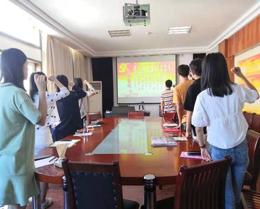 活动伊始,党支书记任英杰组织党员们共同缴纳了7-9月的党费,并指出缴纳党费是每一个党员必尽的义务,各位党员应该积极履行自己的义务。随后便带领着全体党员重温了入党誓词。