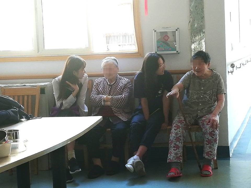距离上一次开展志愿服务活动已过去将近三个月,久别重逢之下,老人与志愿者们的脸上洋溢着笑容,气氛一片和乐。活动伊始,队伍里唯一的一名新疆同学自告奋勇跳起了民族舞,同行的一名志愿者亦自发唱起民歌为其伴奏,在一旁观看的老奶奶们鼓起了掌,并竖起大拇指对他们的表演表示赞赏。