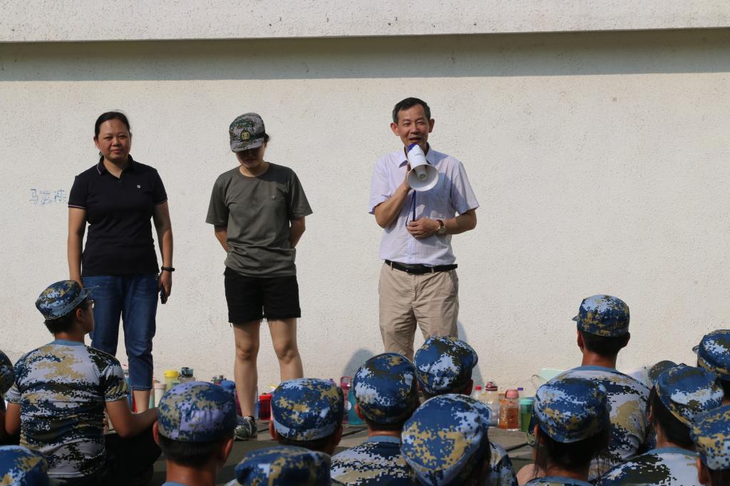 训练间隙,卢治平代表学院,向同学们表达亲切的慰问。就先前训练中出现的新生身体不适的情况,他谈到,近日气温较高,军训强度较大,同学们要把身体健康放在首要位置,在此前提下再认真地完成军事任务。卢治平也勉励同学们,希望同学们在军训期间发扬艰苦奋斗的光荣品质,决胜军训面向未来,肩负起时代赋予的重任。在中秋佳节即将到来之际,卢治平代表学院向同学们送出了月饼和牛奶,同时送出了中秋的祝福。