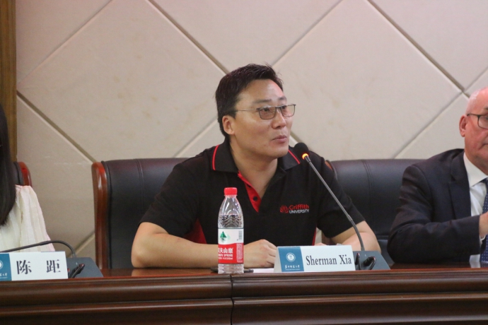 接着,中澳合作办学项目的Sherman Xia,针对现阶段的出国留学问题发表了讲话。他讲道,“2+2”合作办学项目是当前教育部政策下的一种创新型的办学模式,是为我国引进国外优质教学资源与培养国际化人才的有效举措,通过这样的办学模式,可以帮助学生以最小的成本,最短的时间获得最大的出国收益。