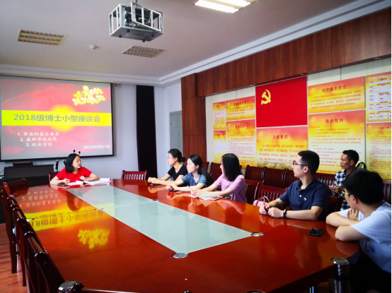 6月17日下午三点,2018级博士研究生在院会议室教室召开小型座谈会,会议围绕毕业基本要求、最新毕业政策、就业去向三个主题展开,研究生辅导员翟娟、2018级博士全体成员参加此次座谈会。