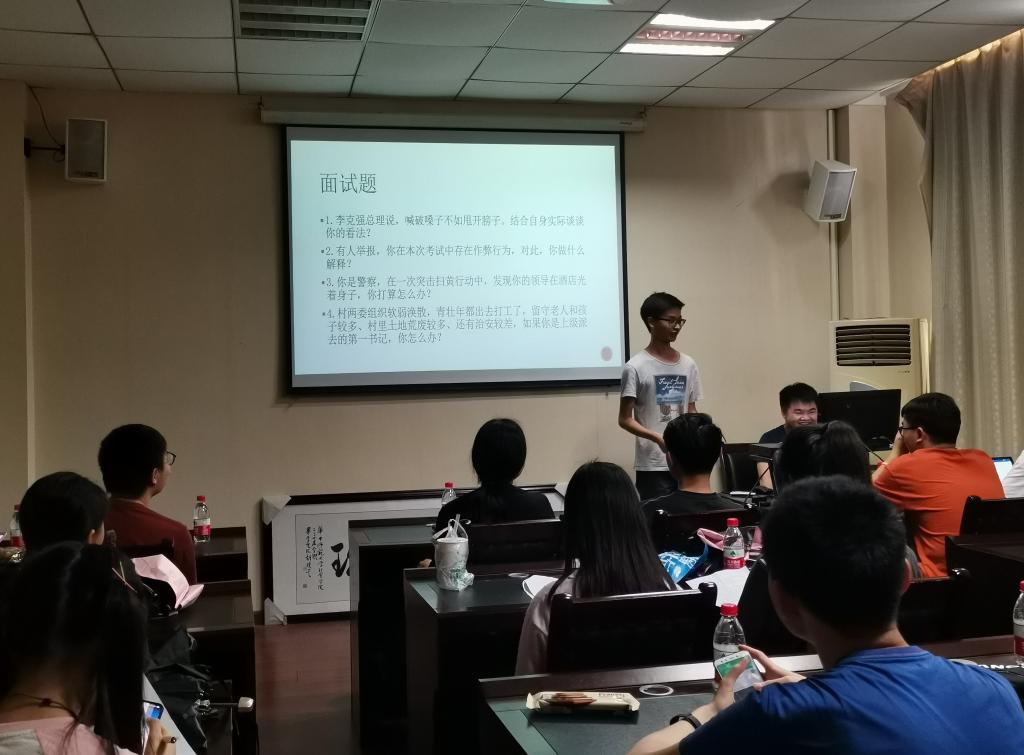 班会伊始,由四位优秀毕业生介绍保研、考研、留学以及考公务员的相关知识。其中,周行以自己的游学经历为例,告诉同学们要在善于抓住机会。赵恒从四个方面深入浅出地讲解了关于公务员考试内容的相关知识。朱云昊就保研时间表、获得免推的要求、院内的保研方案以及保研准备的注意事项四个方面详细地向同学们介绍关于保研的相关事宜。肖天程分享了自己的考研经历以及室友的毕业去向,告诉同学们迷茫只是暂时的,在未来的时间里通过不断地尝试,同学们就会了解自己的兴趣所在,并为之奋斗。他在最后也祝愿同学们前程似锦,未来可期。