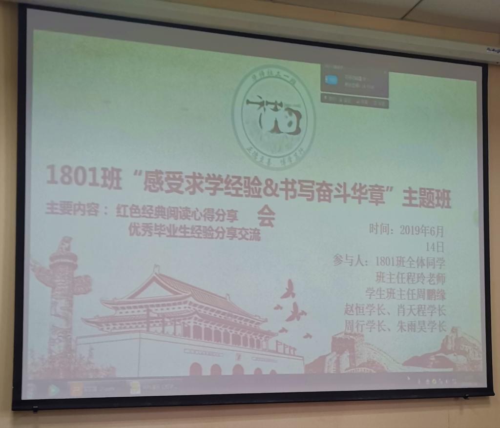 6月14日下午两点,1801班第二次班会在MSW教室顺利召开。班主任程玲、学生班主任周鹏缘、2019届社会学院优秀毕业生朱云昊、周行、肖天程、赵恒及1801班全体成员参加本次班会。
