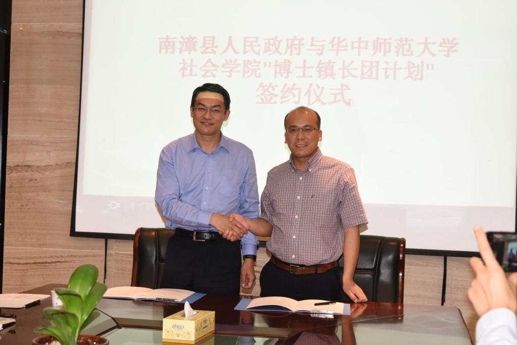 最后,肖力与符平分别代表双方签订了“博士镇长团计划”合作协议。据悉,南漳县将在今后三年内每年面向我院博士研究生提出1-3个挂职锻炼岗位及人选要求,我院也会根据南漳县今年的岗位需求情况于近期开展遴选工作。博士研究生李敏将作为首批我院“博士镇长团计划”成员挂职南漳县有机谷管委会。