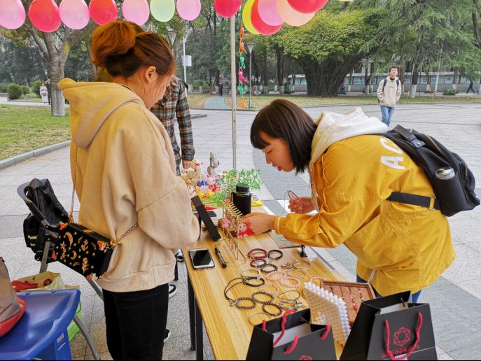 此次活动中,我院主办了好望角宝石和手绘的义卖活动,旨在践行社工“助人自助”的理念,通过帮助残障人士打造原创手工饰品市场,开发他们的潜能,鼓励他们通过自己的努力追求更好的生活。琳琅满目的戒指、挂件、手链很快吸引了来往学生的注意。志愿者向顾客们讲解道:“饰品均由阳光家园的残障人士手工编制而成,我们在这里帮助他们进行义卖,所买出的钱会全数返还,借此改善他们的生活。”不少顾客都买到了自己钟意的饰品,表示既能得到精巧的原创饰品又能带给残障人士一些帮助,十分有意义。