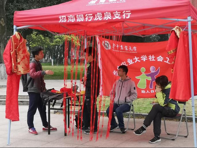 喷泉广场的另一角,华中农业大学的社工站点让人眼前一亮。他们展示出大红色的中式婚礼服装,织起红色的幔帐,吸引行人驻足观看。志愿者们表示,他们主要承办社工周的生命安全教育活动,包括残疾人体验和婚礼体验,参与者可以扮演失语者、耳聋者和失明者,也可以在志愿者的指导下和搭档穿上婚礼服装,体验中式婚仪,进而体验不同的人生。当被问及该活动设计的意义时,一位志愿者说:“家庭是人生的港湾,而婚姻是家庭的基础,希望可以帮助大家提前体验这段生命历程。”