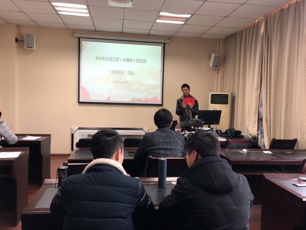2019年3月1日中午12:30,本科生社工中澳党支部二月主题党日活动于社会学院MSW教室顺利开展。本次学习活动应到正式党员5人,实到正式党员4人,共出席11人,请假2人。