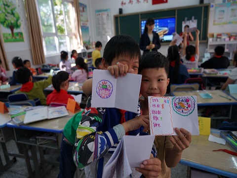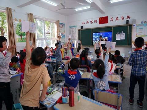 再次回到课堂的8位志愿者受到了来自三年级1班和二班同学们的热烈欢迎,不仅能够一次性叫出老师的代号名称,并且对于课堂规则更是牢记于心,当老师问到时,大家几乎脱口而出。在简单重复了一下“注意安全、认真听讲”等课堂规则之后,便进入了正式的课堂环节。