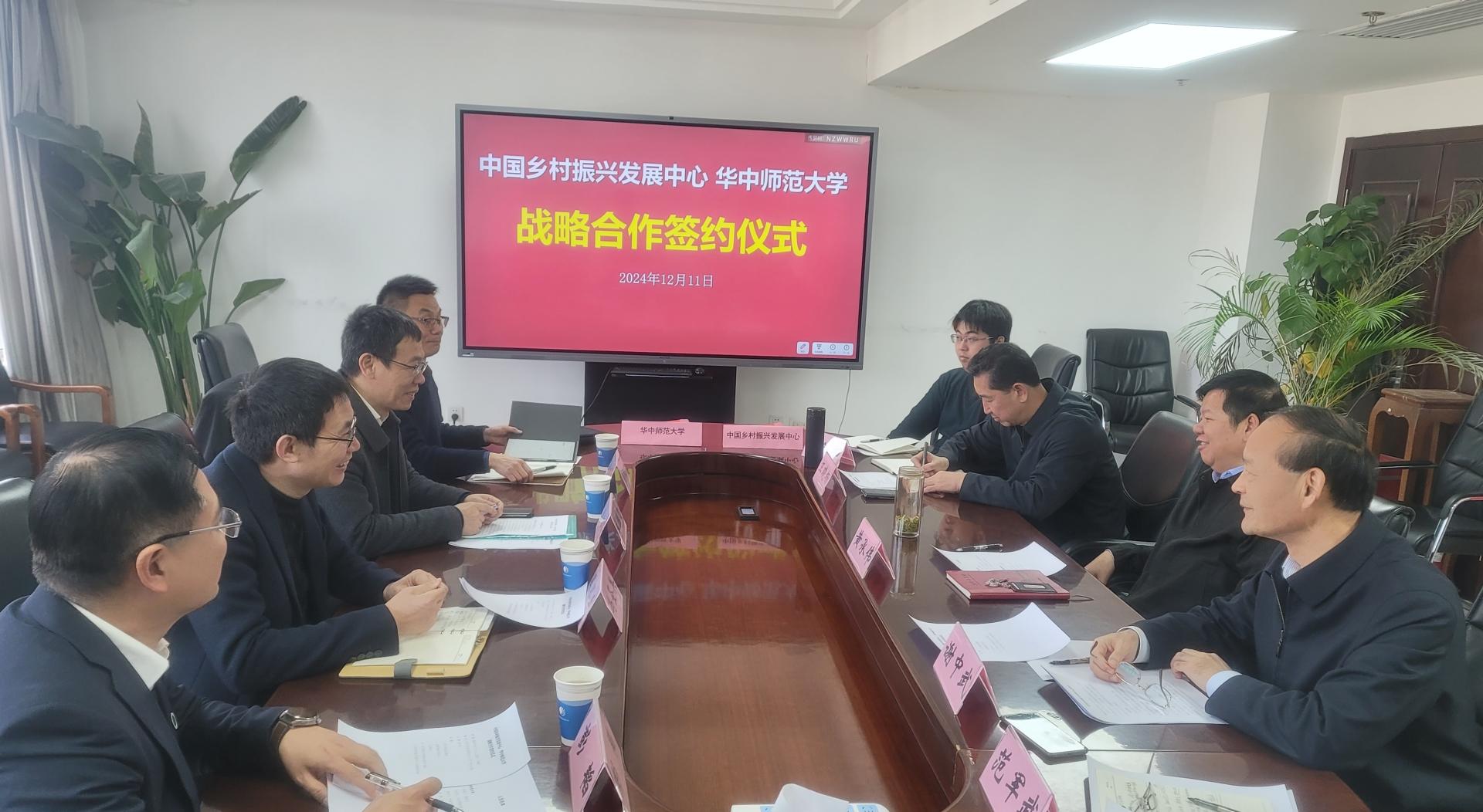 近日,农业农村部中国乡村振兴发展中心与华中师范大学签署战略合作框架协议,在我校建立中国乡村振兴发展研究基地(依托社会学院、乡村振兴研究院进行建设),指导开展推进乡村全面振兴的战略政策研究和调查、规划、评估、经验总结等智库工作,支持我校相关学科更好地服务国家乡村振兴战略。中国乡村振兴发展中心主任黄承伟、副主任谢中武,副校长李鸿飞,社科处相关负责人,社会学院党政主要领导以及双方相关机构负责人出席签约仪式。签约仪式由谢中武主持。